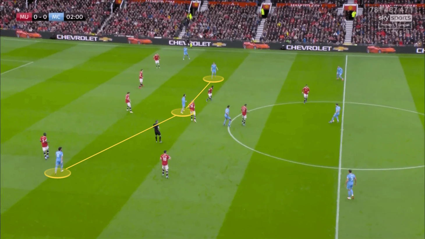 Эти примеры выглядят похожими на примеры игры Палмера, Гюндогана и Бернарду против “Эвертона”. Разница заключается в том, что в данном случае трио полузащиты изначально располагалось ниже и двигалось вперед. В матче же против мерсисайдцев Палмер наоборот опускался к полузащите из высокой позиции.