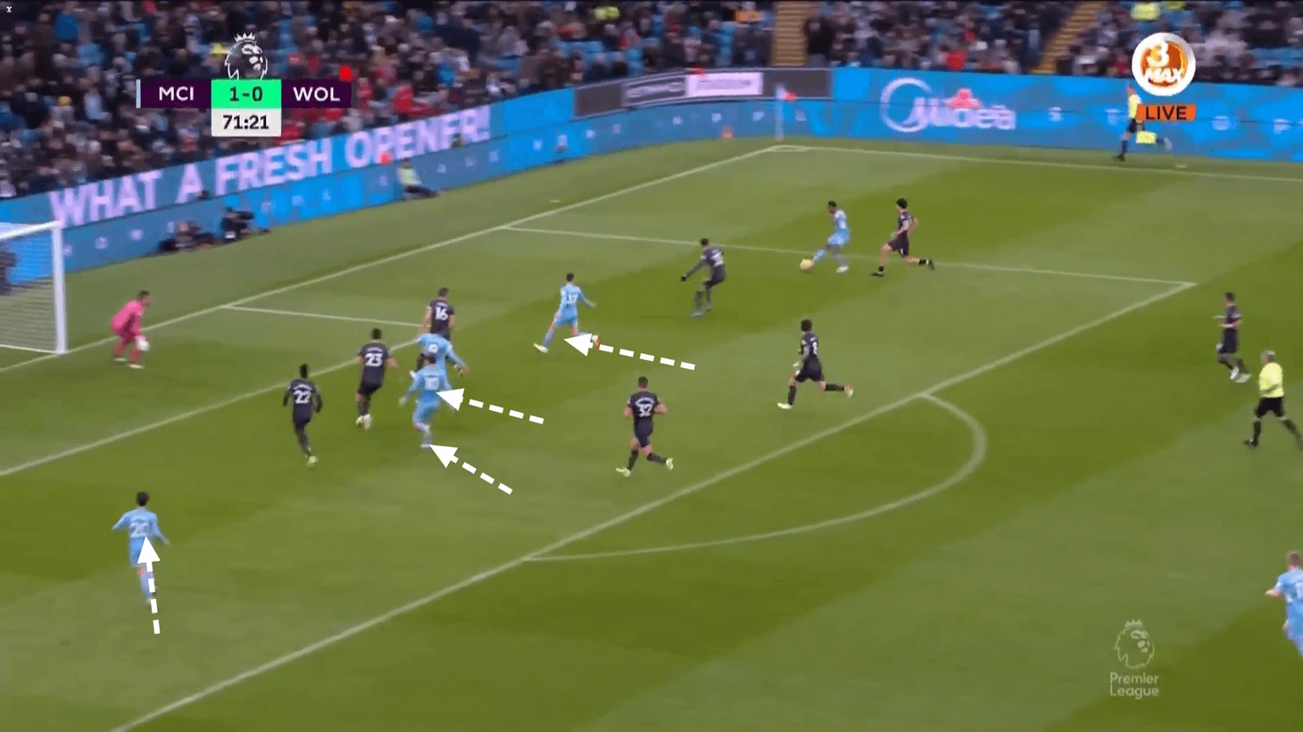 Когда они играют в центре, их задачи сильно отличаются от задач Грилиша, Фодена и Палмера. Они не опускаются между линиями, а остаются выше и совершают рывки за спину защитникам. В некоторых матчах это может быть эффективнее создания дополнительных линий передач.