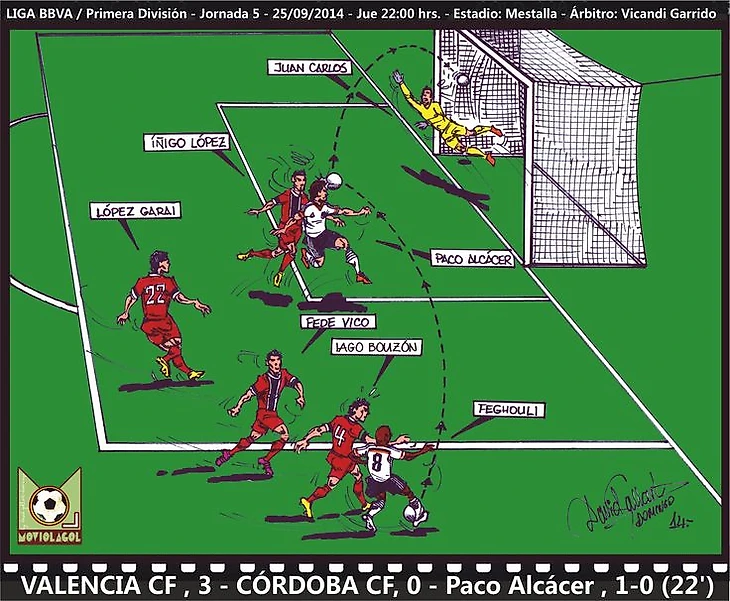 «Валенсия» — «Кордоба» - 3:0. Пако Алькасер, 22-я минута, 1:0
