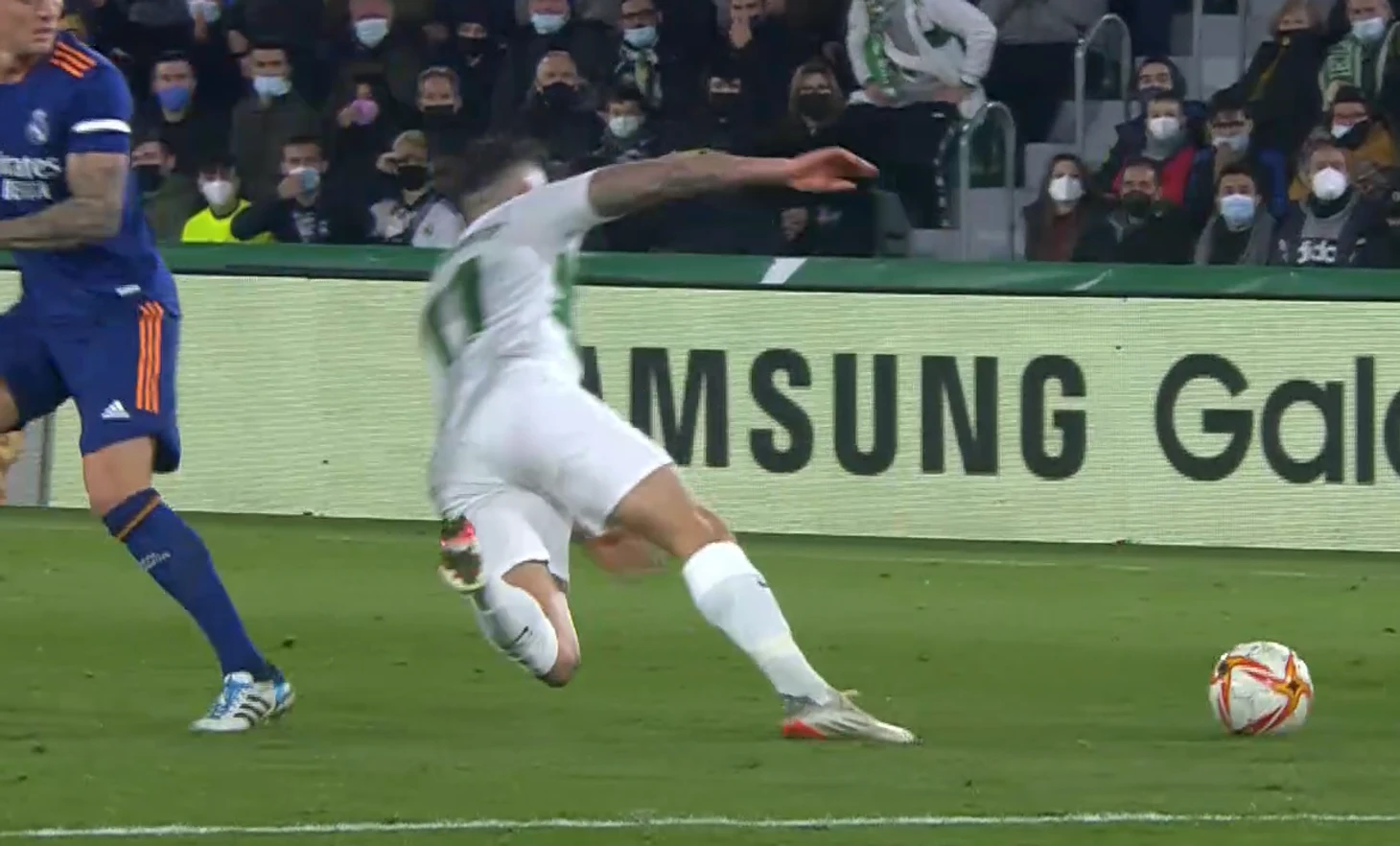 Игрок «Эльче» сделал финт с мячом возле Крооса и упал сам. Судья подумал, что немец фолил, и наказал его желтой.