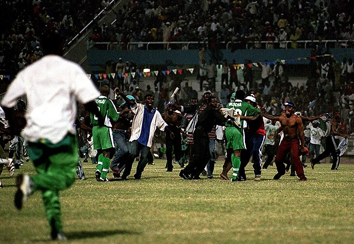 • В 2000 году грянул настоящий скандал. Официальный член нигерийской делегации выбежал на поле, чтобы стащить оберег из ворот сборной Сенегала. Это случилось за 15 минут до конца при счете 1:0 в пользу сенегальцев – и сборная Нигерии после этого забила два раза, Джулиус Агахова оформил дубль на 85-й и 92-й минутах.