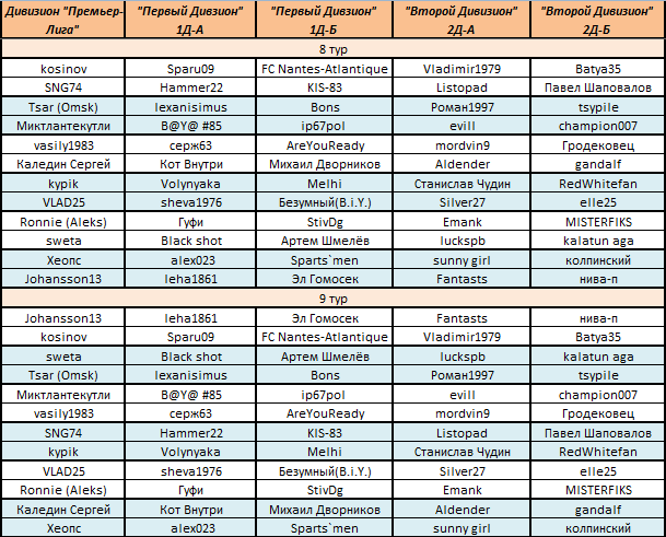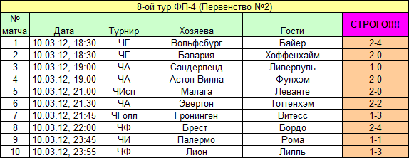 Дедлайн для 8-го тура - 10.03.2012, СУББОТА, 18.30