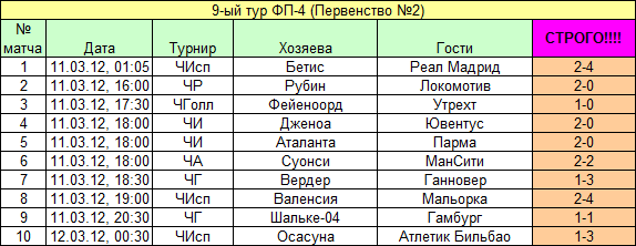 Дедлайн для 9-го тура - 10.03.2012, СУББОТА, 23.20