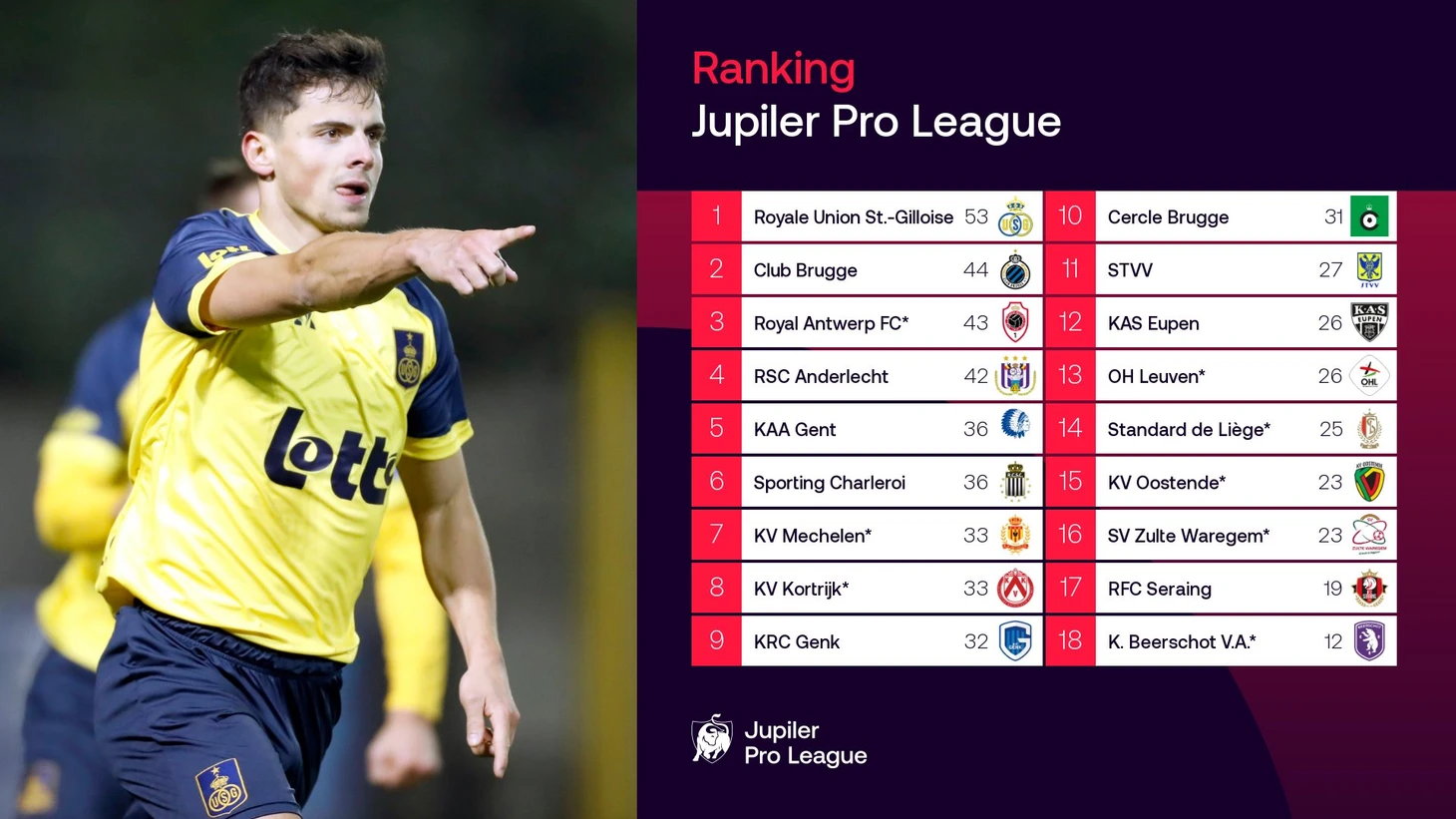 Турнирная таблица чемпионата Бельгии по итогам 23-го тура
