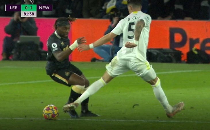 Другой спорный момент у ворот «Лидса» произошел (момент с пенальти на Аллане) на 81-й минуте. Сен-Максимен вошёл в штрафную площадь по левой половине поля, где его по ногам задел Кох. Судьи посчитали, что Аллан начал падать сам, а действий Робина было недостаточно, чтобы падать в штрафной площади.
