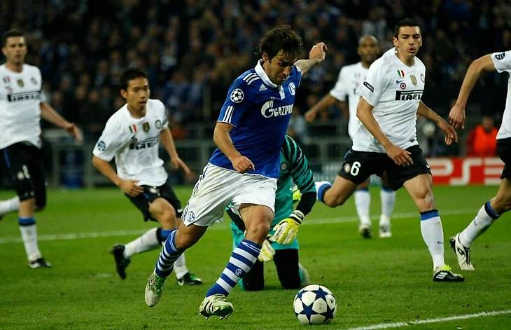 "Шальке", выступающий в настоящее время во второй бундеслиге, еще 10 лет назад был одним из ведущих клубов Германии и постоянным участником Лиги Чемпионов. В квартете с "Челси", "Базелем" и "Стяуа" команда уверенно заняла второе место. Этому не помешали два разгромных поражения от "Челси" (по 0-3). Две победы над "Базелем" (1-0 и 2-0) и четыре очка в двух матчах со "Стяуа" (3-0 и 0-0) позволили клубу выйти в плей-офф, опередив чемпиона Швейцарии на четыре очка. В том же сезоне в плей-офф Лиги Чемпионов впервые вышел "Манчестер Сити". В квартете с "Баварией", московским ЦСКА и "Викторией" из Пльзени клуб набрал 15 очков. Но этого не хватило для первого места. "Бавария" обошла соперника по личным встречам. Если во втором туре действующий победитель Лиги Чемпионов выиграл в Манчестере 3-1, то в шестом туре "Бавария" сенсационно проиграла дома 2-3, ведя по ходу матча 2-0! Но в итоге это оказалось не критичным - "Бавария" все равно заняла первое место в группе. Англо-немецкие противостояния продолжились и в плей-офф. "Бавария", как и годом ранее, получила в соперники лондонский "Арсенал" и, как и годом ранее, выиграла в Англии с разницей в два мяча (на этот раз 2-0). Но если весной 2013 года "Арсенал" после домашних 1-3 едва не взял реванш в Мюнхене (тогда "Баварию" спасло лишь правило гола на выезде), то на сей раз команда не повторила ошибок, хотя и не сумела обыграть канониров дома, довольствовавшись устроившей ее ничьей 1-1. А в четвертьфинале "Бавария" достаточно уверенно прошла "Манчестер Юнайтед", добившись в гостях ничьей 1-1 и выиграв дома 3-1. Три поездки в Англию в рамках одного еврокубкового сезона - один из еврокубковых рекордов. Любопытно, что в том же сезоне в Германию трижды приезжал "Реал" Мадрид, последовательно прошедший в плей-офф "Шальке", дортмундскую "Боруссию" и "Баварию". Но в рамках Лиги Чемпионов 2013/2014 испанские клубы встречались с немецкими только четыре раза.