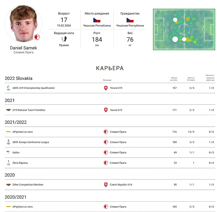 Находки для РПЛ, игрок №16 — Даниэль Самек. Похож на Френки Де Йонга, в 17 лет играет в основе «Славии»