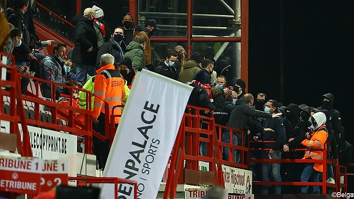 По неподтвержденной информации, их аплодисментами спровоцировали фанаты «Антверпена», пробравшиеся на стадион. Сейчас в чемпионате Бельгии посещать матчи могут только болельщики домашних команд, но те, кто хочет поддержать команду гостей, идут на хитрость и достают билеты на чужие секторы. Клубы с этим борются: тот же «Кортрейк» перед матчем проверил списки вместе с полицией и аннулировал полсотни билетов – но у кого-то план вполне мог сработать.