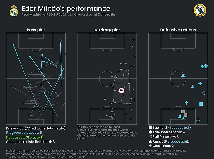 Чрезвычайная зависимость команды от Тони Крооса и Винисиуса в продвижении мяча – старая песня. Кроос – игрок с наибольшим количеством прогрессивных передач во всей Испании, а Винисиус – с наибольшим количеством успешных выходов из обороны с мячом во всех пяти ведущих европейских лигах. У Винисиуса на 35 выходов больше, чем у Бернарду Силвы, который занимает второе место в этом списке. Кроос и Винисиус играют на левой стороне поля. Для «Мадрида» было крайне важно разработать план по перехвату мяча в зонах, откуда они смогут проводить контратаки в большом количестве. Это побудило подопечных Анчелотти распространить прессинг на свои фланги.