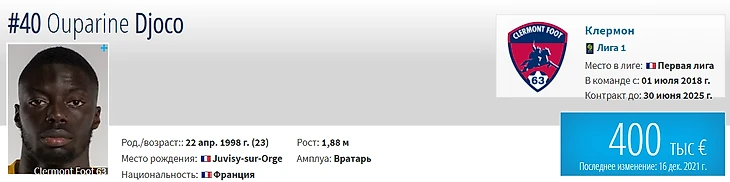 Упарен Джоко - резервный вратарь "Клермона", француз сенегальского происхождения, волею судеб ставший первым вратарём команды.