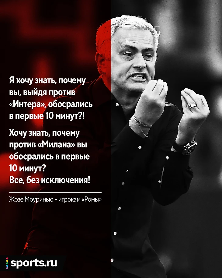 «Я хочу знать, почему вы, выйдя против «Интера», обосрались в первые 10 минут?! Хочу знать, почему против «Милана» вы обосрались в первые 10 минут? Все, без исключения!