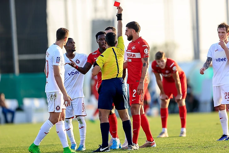 Часто в случае удалений в товарищеских матчах команды продолжают играть 11 на 11, однако армянская сторона наотрез отказалась разрешить «Спартаку» сделать замену. Не помог даже совместный просмотр повтора в перерыве, на котором видно, что локоть Промес не поднимал.