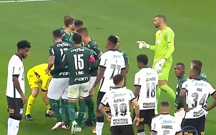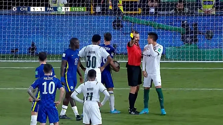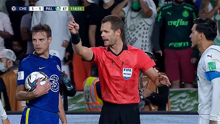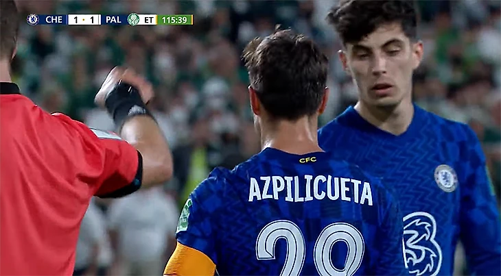 Все началось еще до окончательного решения арбитра. Судья Крис Бит побежал смотреть ВАР – после утвержденного решения недовольные игроки «Палмейраса» окружили судью и пытались надавить. В это время Аспиликуэта спокойно забрал мяч в руки и незаметно перекинулся взглядами с Хавертцем.