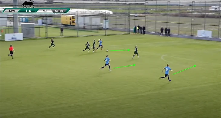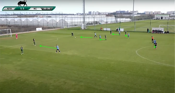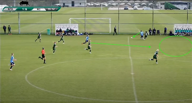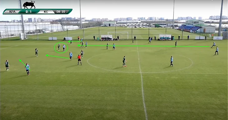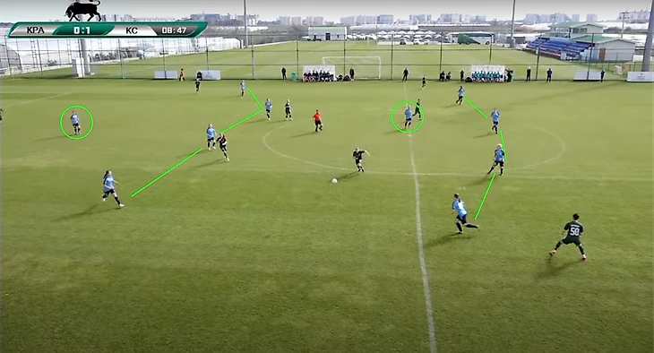 «Крылья» очень хорошо заставляли ошибаться футболисток «Краснодара», прессингуя на их половине поля. Практически все голы в матче были забиты после давления. Причём хорошо видно, как игроки самарской команды синхронно и дисциплинировано идут в прессинг.