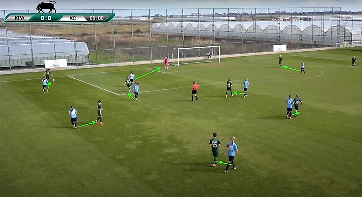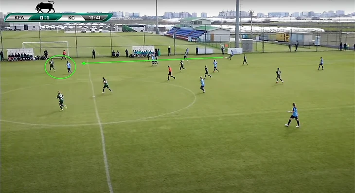 После отбора мяча присутствует нацеленность на быстрый переход на чужую половину поля. Видно, что команда уделяет достаточно времени этому аспекту. И есть предположение, что "Крылья" будут активно использовать быстрые переходы в контратаку в чемпионате.
