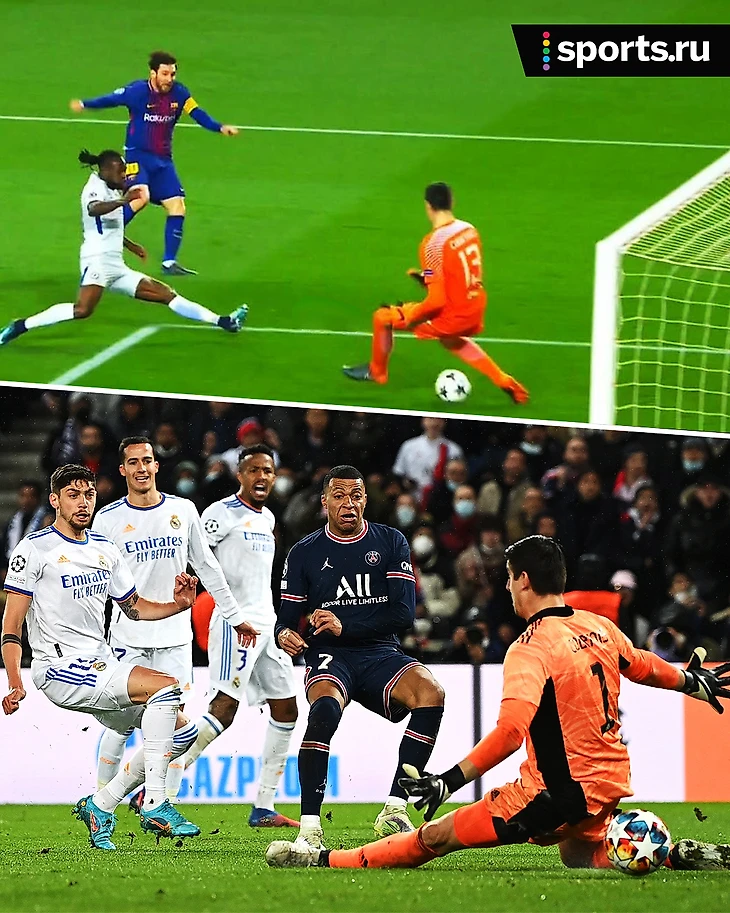 Внимательные пользователи твиттера заметили сразу две интересных параллели. Гол Мбаппе (сместился с левого края штрафной и забил Куртуа между ног) очень похож на гол Лео в ворота «Челси» 14 марта 2018-го. Смотрите сами. Даже форма Тибо в обоих случаях – оранжевая.