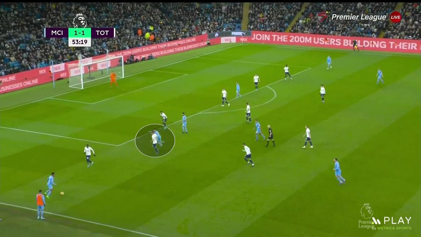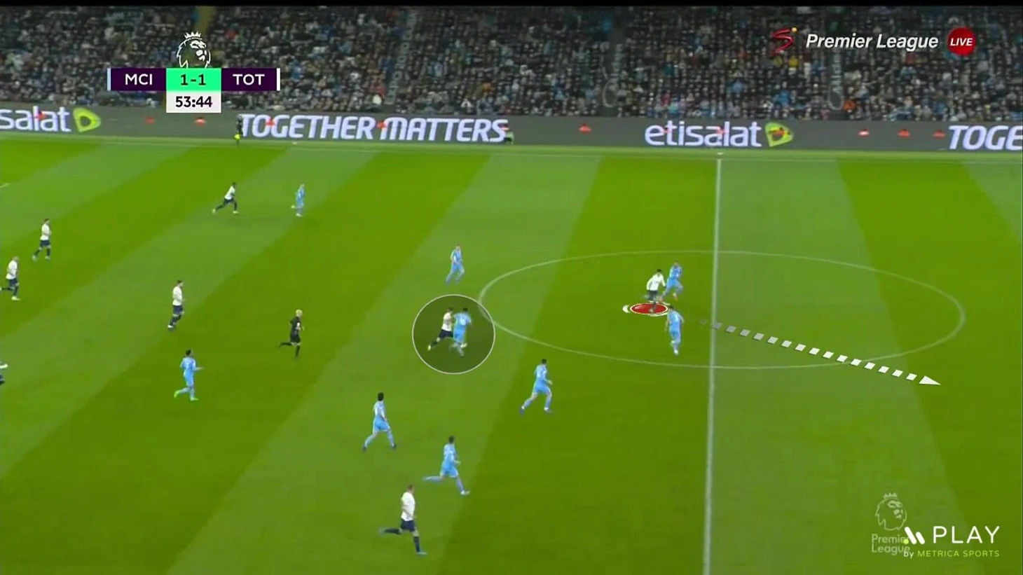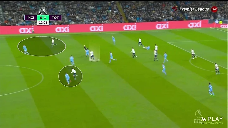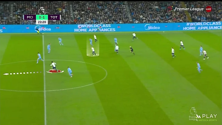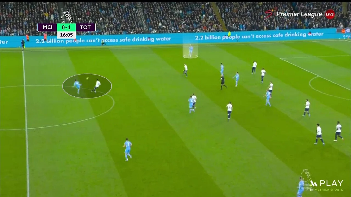 Импровизированные треугольники на левом фланге создавались весь первый тайм, но постоянного наполнения в них не было. Участвовали разные футболисты, что добавляло непредсказуемости. Например, в первом голе «Сити» Родри подключился и стал частью треугольника: