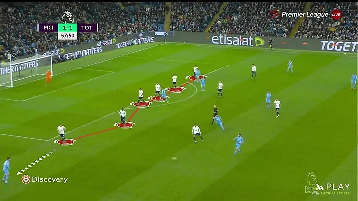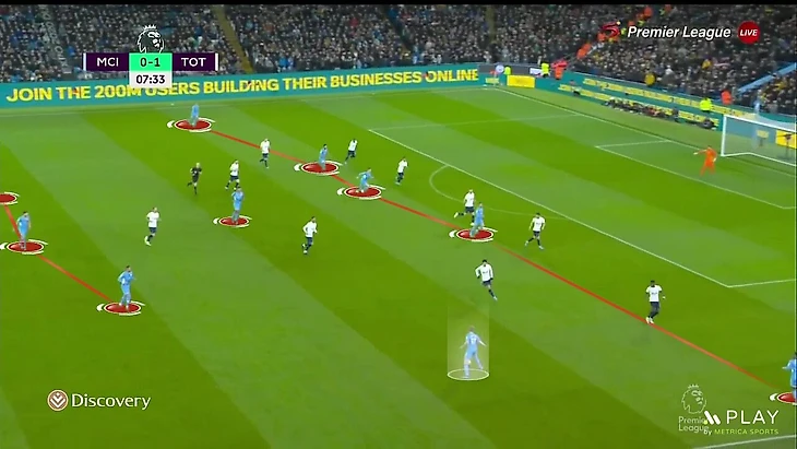 Результатом мог быть один из трех исходов: 1) свободный игрок «Сити» получает возможность разбежаться и набрать скорость около штрафной; 2) «Сити» комбинирует, а «Тоттенхэм» по цепочке не успевает за каждым следующим шагом; 3) свободный игрок сразу ищет варианты в штрафной для паса вразрез или навеса.