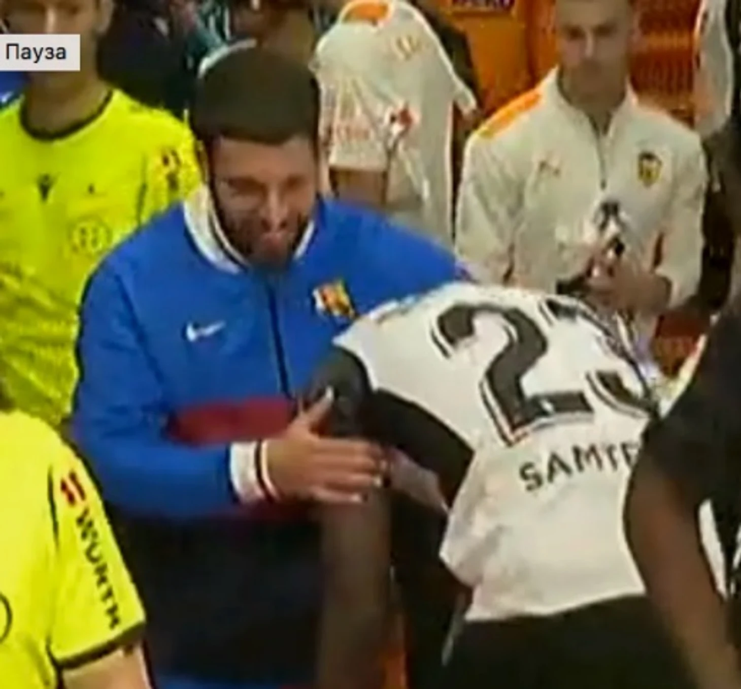 Мориба тепло поприветствовал игроков «Барсы» перед матчем. Его тоже встретили улыбками