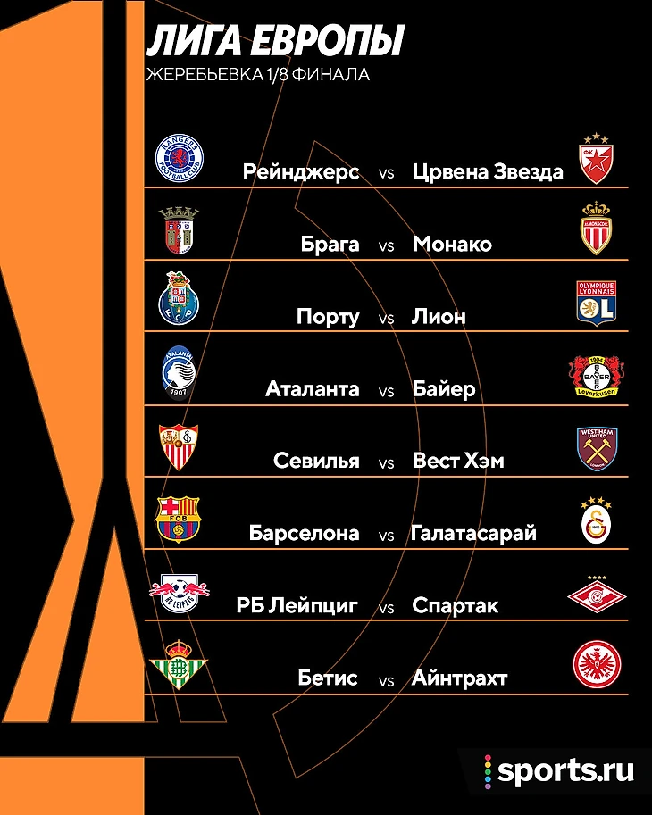 «Спартак» против «Лейпцига» Тедеско, «Барсе» выпал «Галатасарай». Все пары 1/8 финала Лиги Европы