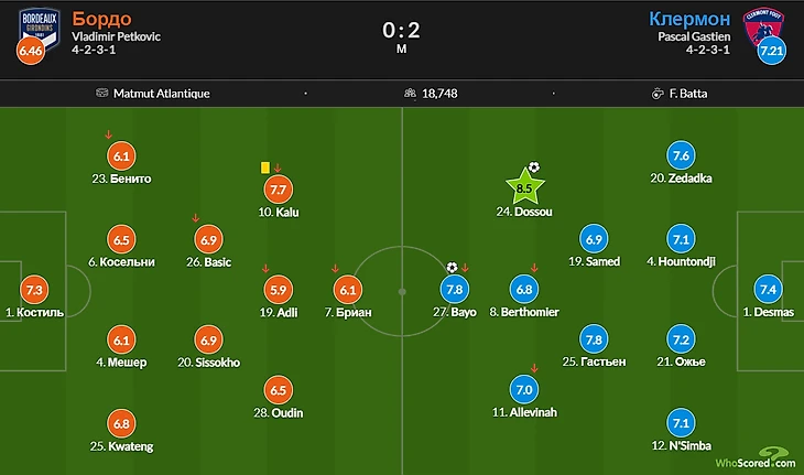 А сейчас вернёмся к ожидающему нас матчу "Клермон" - "Бордо". Обе команды очень много пропускают (41 и 62 мяча соответственно), а забивают, само собой, намного меньше. Разумеется, Паскаль Гастьен вряд ли будет отходить от своей излюбленной схемы 4-3-3, которая стала для него основной в большинстве игр Чемпионата, тогда как новый главный тренер "Бордо", выходец из клуба "Реймс", Давид Гийон вряд ли будет резко менять схему команды. В матчах с равными по силе командами "Бордо" раньше играл в классические 4-2-3-1, но новый тренер, новые порядки - тяжело прогнозировать. Скажу лишь, что Гийон в "Реймсе" сезона 20/21, в своём последнем тренерском пристанище, практиковал любопытную игру 4-1-4-1, невероятно атакующую схему, но я всё же думаю, что в матче с "Клермоном" жирондинцы выйдут в привычные для себя 4-2-3-1, правда связка Уден - Хван - Элис, скорее всего трансформируется в Уден-Хван - Адли. Посмотрим!