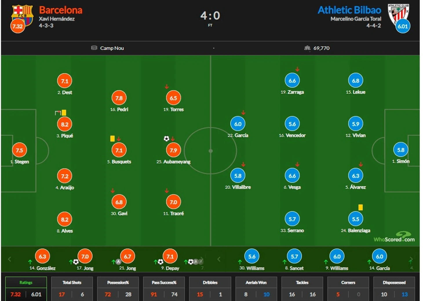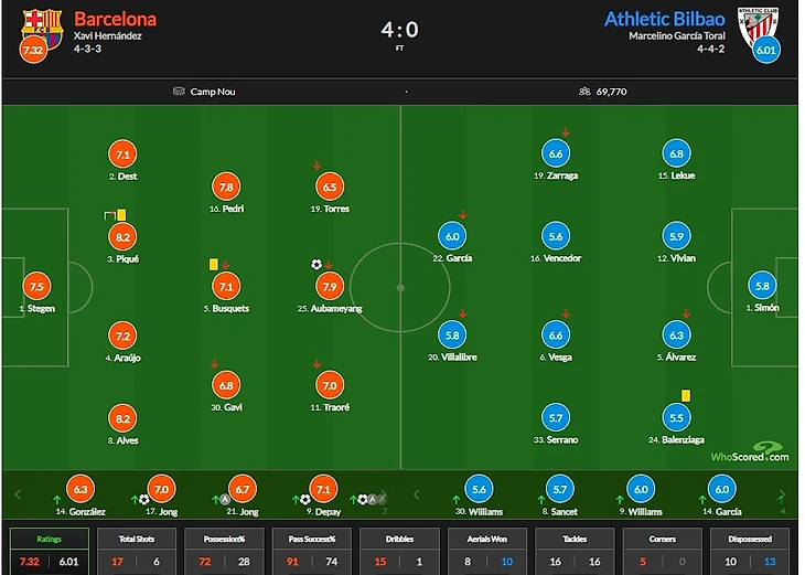 Вот оценки «Барселоны» за матч с «Атлетиком» от портала: