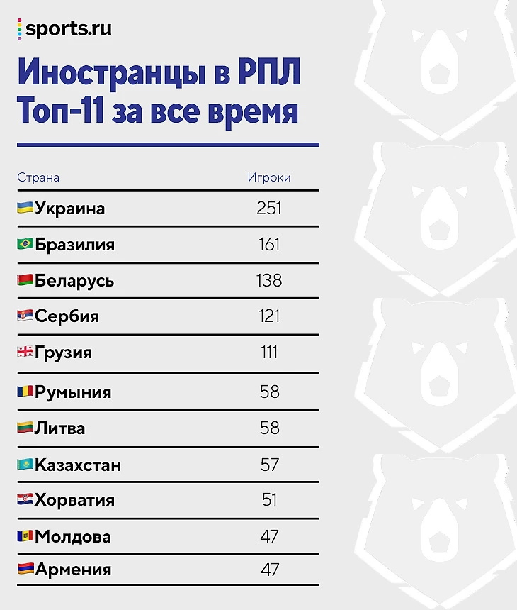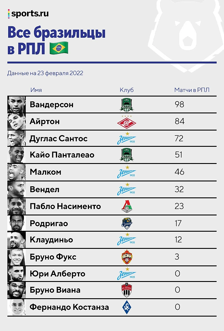 Самое большое представительство у Бразилии. Мы готовили пост до старта первого тура после возвращения – Юри Алберто уже успел забить за «Зенит».