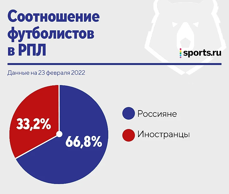 Соотношение иностранных игроков и россиян выглядит так. Легионеров – ровно треть.