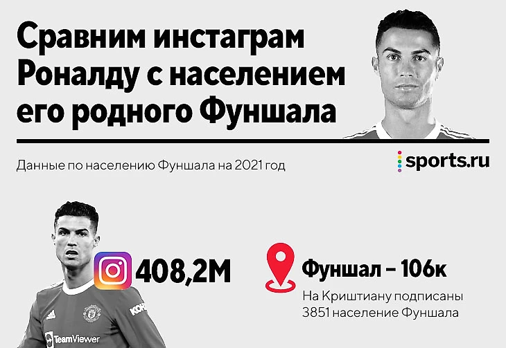 Сменим критерий и сравним аудиторию Роналду с населением его родины – Фуншала (главный город и морской порт острова Мадейры).