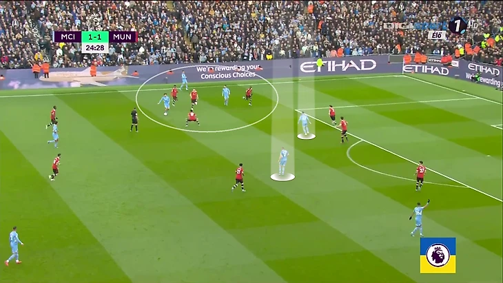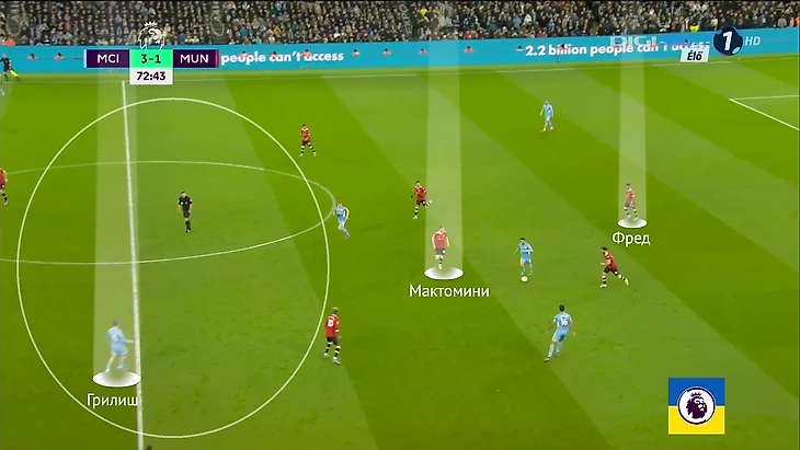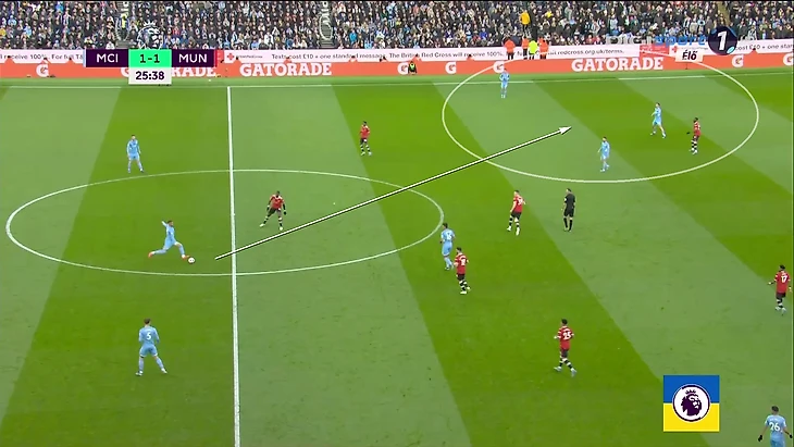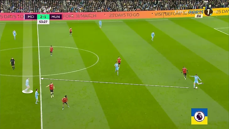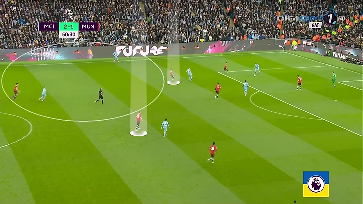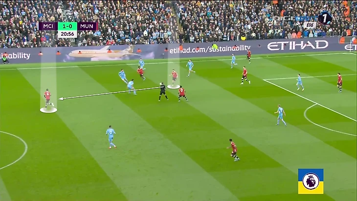 Прессинг не отключил «Сити» прямо все возможности для выхода в атаку (хозяева использовали фланги и опускания Фила Фодена), но оборвал более привычные методы доставки мяча вперед, а иногда даже провоцировал опасные потери. Благодаря прессингу гостей на трети поля «Сити» даже прошло чуть больше действий, чем на трети «МЮ» (29% против 28%).