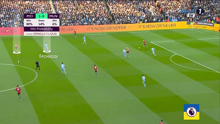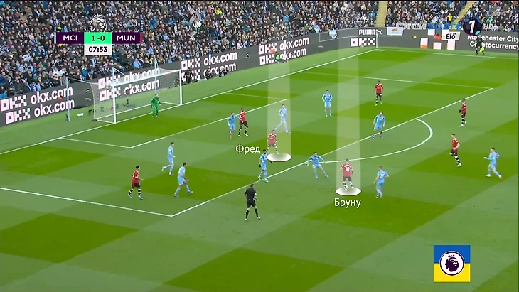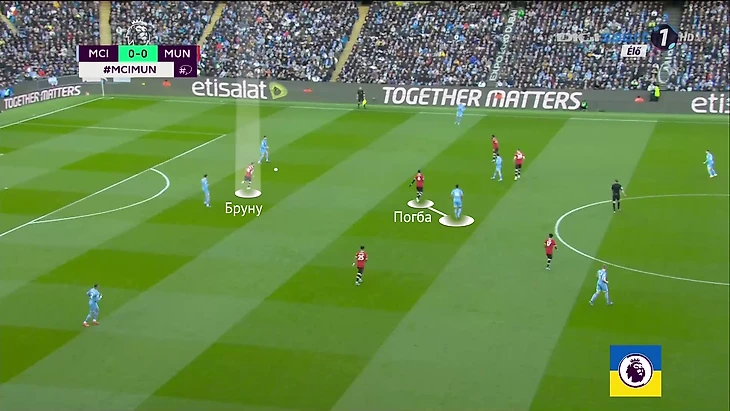 Перед голом «Юнайтед» разбил контрпрессинг «Сити», но даже там проявилась роль Бруну и Погба. Португалец снова получил свободу благодаря умному движению, а Поль сыграл чуть повыше, но тоже неудобно для центрального защитника «Сити»: