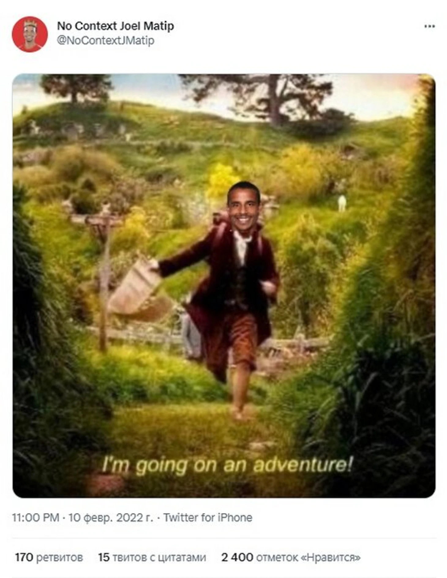 Есть и локальные мемы. Каждый раз, когда Жоэль идет в фирменный проход, в твиттере постят эту картинку. «Я отправляюсь в приключение!» – и лицо Матипа на теле Бильбо Бэггинса.