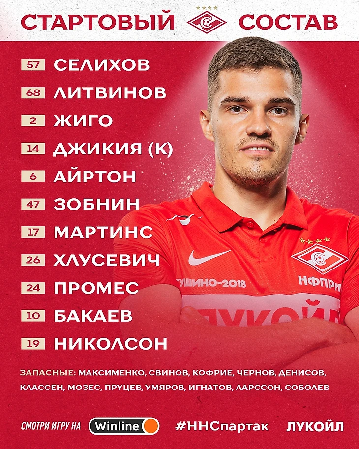 Состав «Спартака» в матче с «Нижним Новгородом»