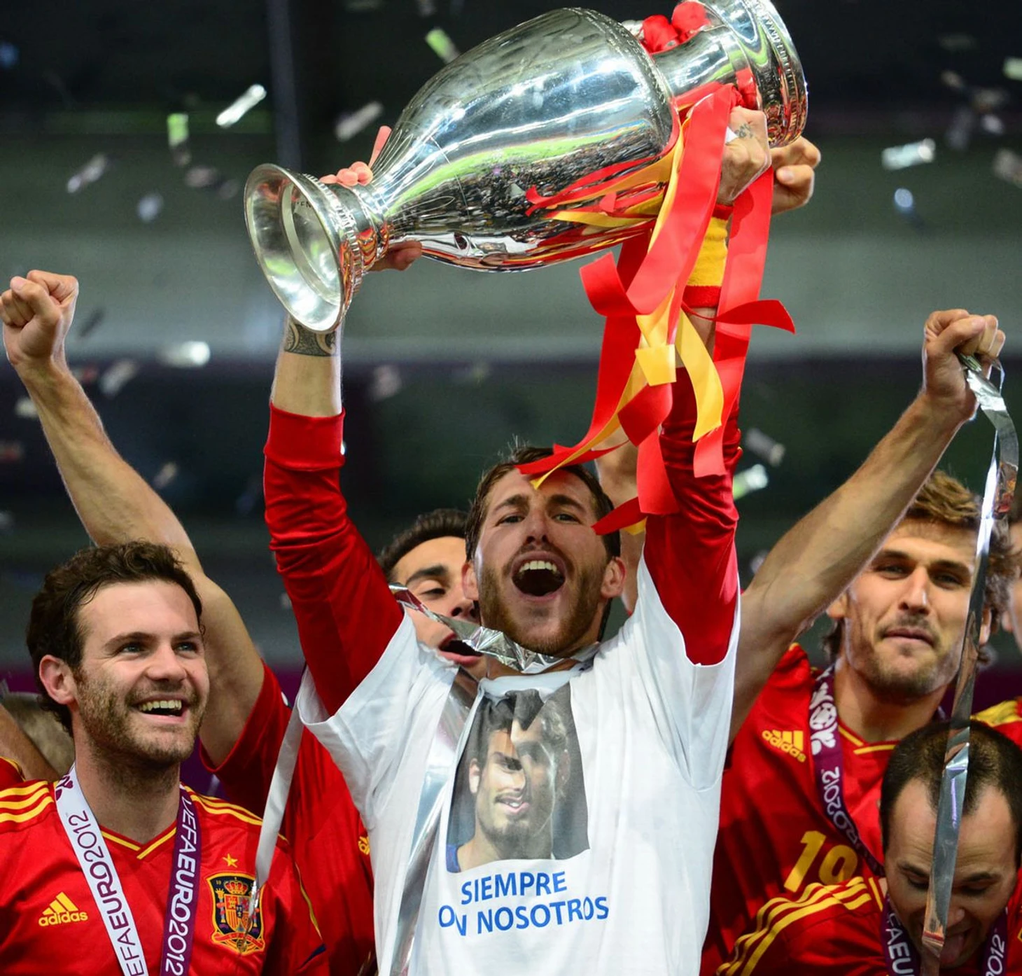 На Евро-2012 Рамос вернулся в центр обороны. Когда его спросили о смене амплуа, он ответил: «Я адаптировался и чувствую себя комфортно в центре, но я чемпион мира и Европы на позиции правого защитника». Он сыграл во всех матчах в Польшеи Украине вместе с игроком «Барселоны» Жераром Пике и в полуфинале против сборной Португалии реализовал пенальти, забив в итоге победу со счетом 4:2 (0:0 после 120 минут) в стиле «паненки». 1 июля Рамос завоевал свой 3й трофей в составе сборной Испании, разгромив в финале сборную Италию со счетом 4:0. Выступления Рамоса на Евро принесли ему место в символической команде турнира. Во время празднования Евро-2012 Рамос надел другую футболку, чтобы отдать дань памяти своему покойному другу Пуэрте.