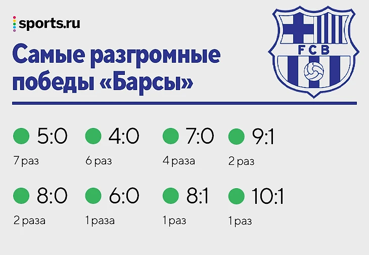 Считаем разгромы: матчей, когда «Барселона» победила соперника с разницей в четыре мяча или больше – 24!
