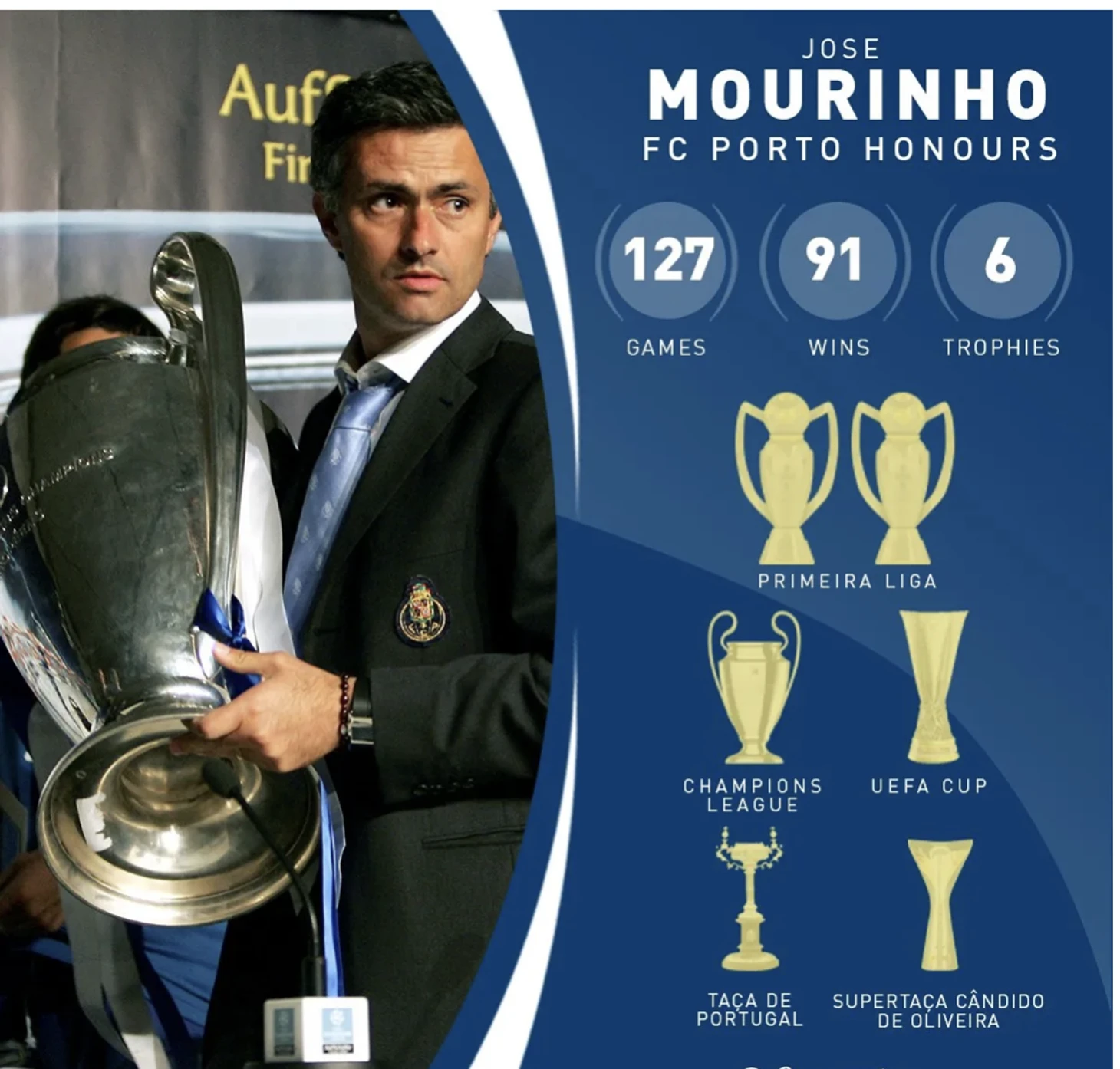 Про Лигу чемпионов стоит отдельно поговорить. Ведь именно после победы в этом турнире Моуриньо посчитал себя особенным. 9 марта 2004 года является датой для Жозе одной из самых главных в его карьере. Матч "Манчестер Юнайтед" - "Порту" 90 минута игры. После неудачной попытки Тима Ховарда отбить мяч, Коштинья добивает его в ворота. С этого момента началась "особенная" история Моуриньо, когда он побежал вдоль бровки "Театра мечты" и сам не до конца веря, что это не сон.