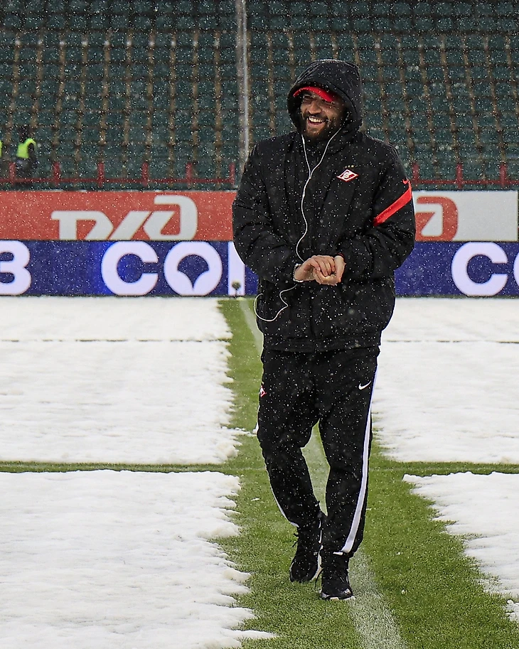 И только после того, когда матч уже очевидно при таких темпах уборки мог сорваться, на стадионе наконец-то появилась механизированная техника. Не знаю, где она вдруг нашлась, где «Локомотив» смог отыскать мини-трактора, но поле более-менее очистили. При том, что снег продолжал валить с небес мощными зарядами. Где-то в 20.07 на поле состоялось небольшое совещание с присутствием представителей обеих команд, и главный арбитр Сергей Карасев предложил начать матч в 20.30. То есть, с опозданием на час. Примерно в это время он и дал в итоге свисток к началу встречи. «Спартак» заметно перекроил стартовый состав. Не вышли вратарь Селихов, полузащитник Умяров, которые не успели подлечить свои травмы, вернувшись, как известно с повреждениями из сборной. Перед игрой что-то случилось с Жиго, который тоже оказался не в оптимальном состоянии. И это была, пожалуй, главная потеря спартаковцев. Правда, в начале второго тайма Жиго все-таки пришлось выйти на поле, заменив получившего повреждение Джикия, которому не раз прилично доставалось по ногам от соперников…