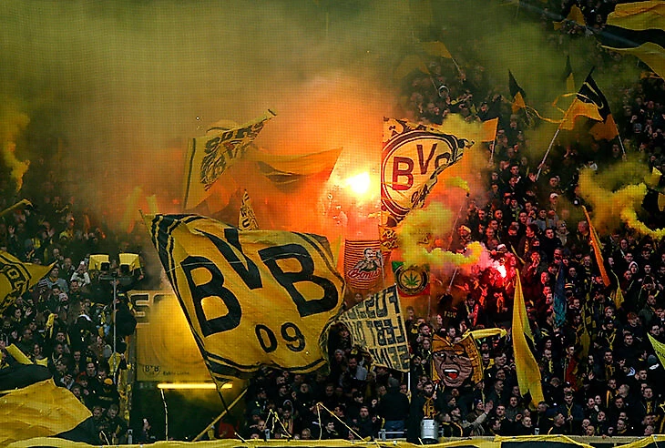 Так выглядела «Желтая стена» – главная фанатская трибуна Германии.