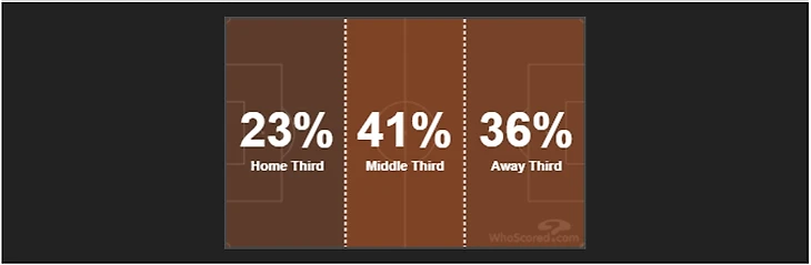 После того, как Реал повел в счете, Сельта серьезно завладела мячом. Перевес был огромный: 73%. Реал, поведя в счете, отошел назад и играл на удержание. Отсюда к концу матча вырисовалась картина, где Сельта доминировала территориально: 36% действий было на стороне Реала. Правда, моментов Сельта уже создать не смогла — Реал на этом отрезке уверено оборонялся.