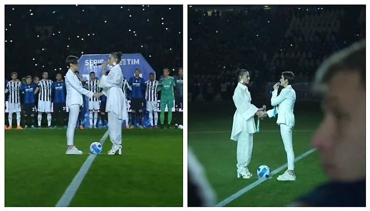 На дерби Италии перед стартовым свистком на поле вышли Екатерина Павленко, солистка группы Go_A, и итальянская певица Гайя. Они исполнили Imagine Джона Леннона.