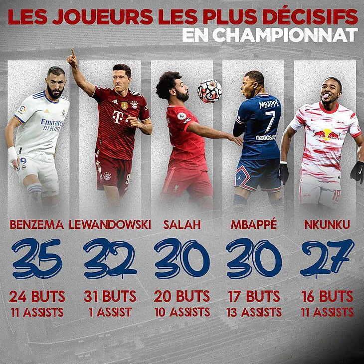Лучшие футболисты в топ-5 лигах Европы по системе «гол+пас»