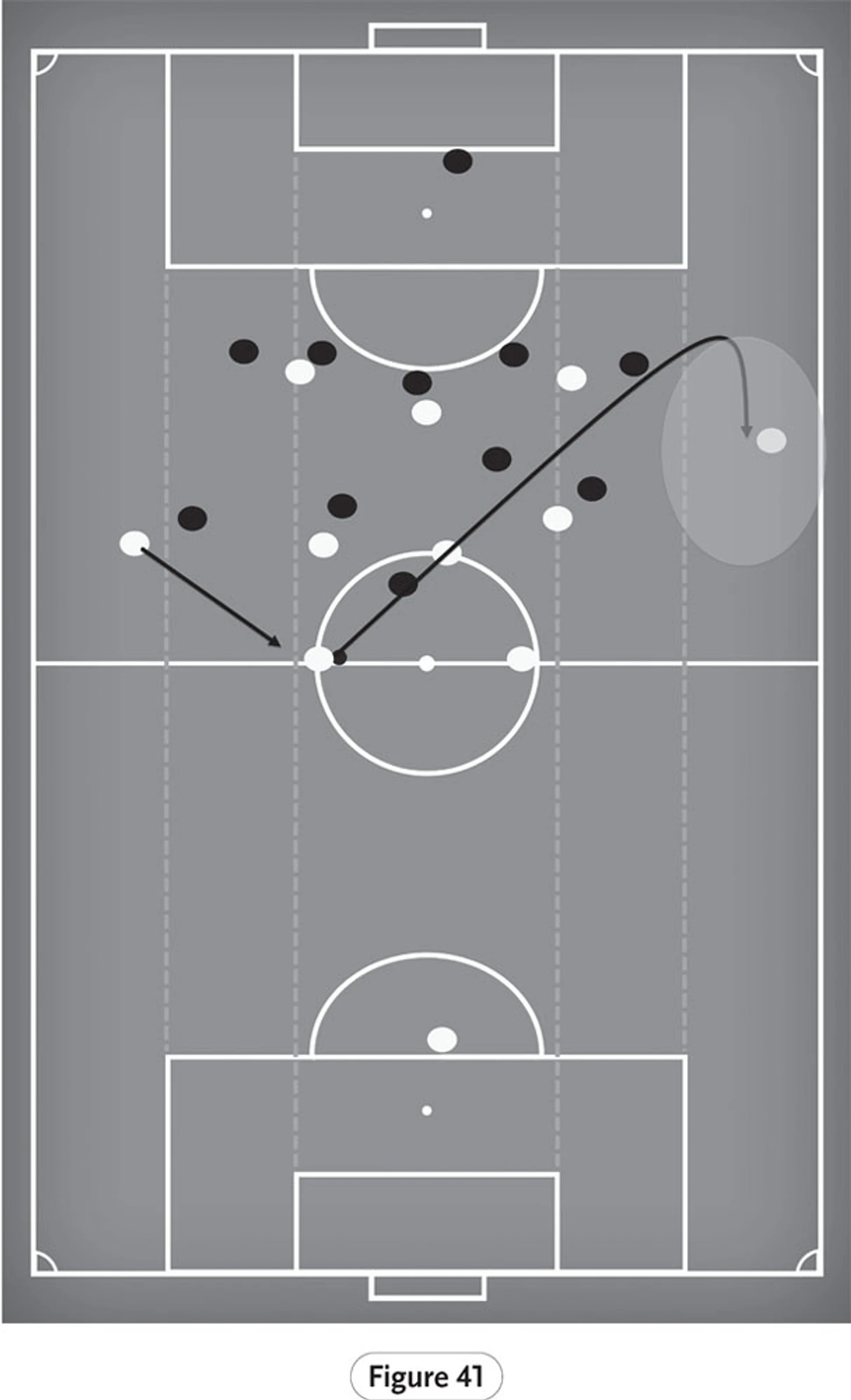 Помимо того, что Ван Дейк чувствует себя комфортно, двигаясь вперед с мячом и заставляя защитников соперника выходить вперед, он также обладает ви́дением и дальностью передачи, позволяющей получить доступ ко всем зонам поля, как мы видим на рисунке 41.