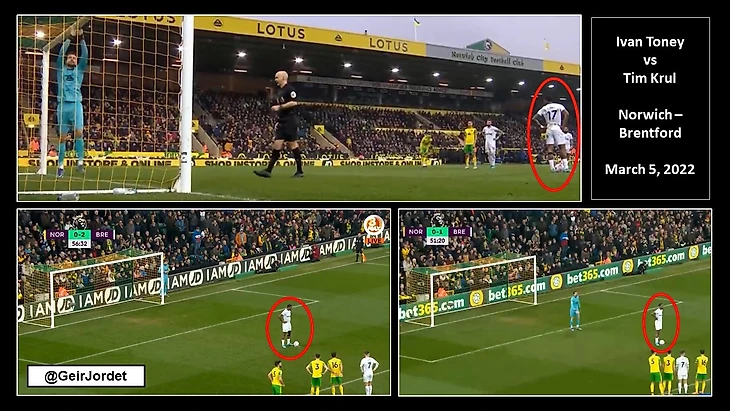2. «Активное отстранение». Пример - Айван Тоуни забил свои последние 18 пенальти за Брентфорд. Несмотря на уловки и выходки Тима Крула, Тони просто повернулся к нему спиной и подождал, пока тот не закончит действия.