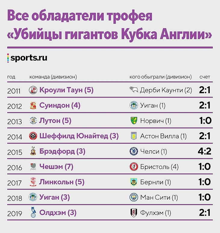 «Убийца гигантов» – английская награда. Ее вручали андердогам за вынос фаворита из Кубка