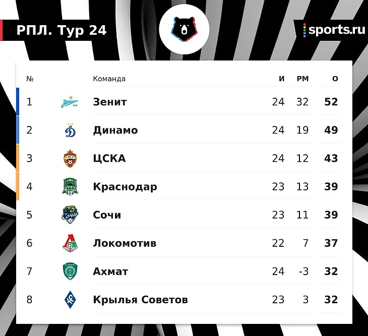 Следующий тур будет построен по той же схеме: сначала матчи «Динамо» и ЦСКА, только потом «Зенит».