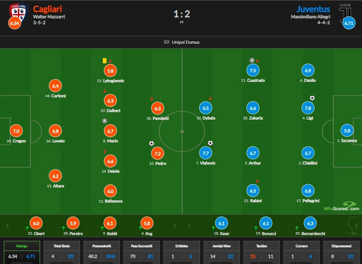 Вот оценки команды Макса Аллегри за матч с «Кальяри» от портала: