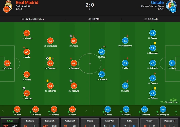 Вот оценки команды Карло Анчелотти за матч с «Хетафе» от портала: