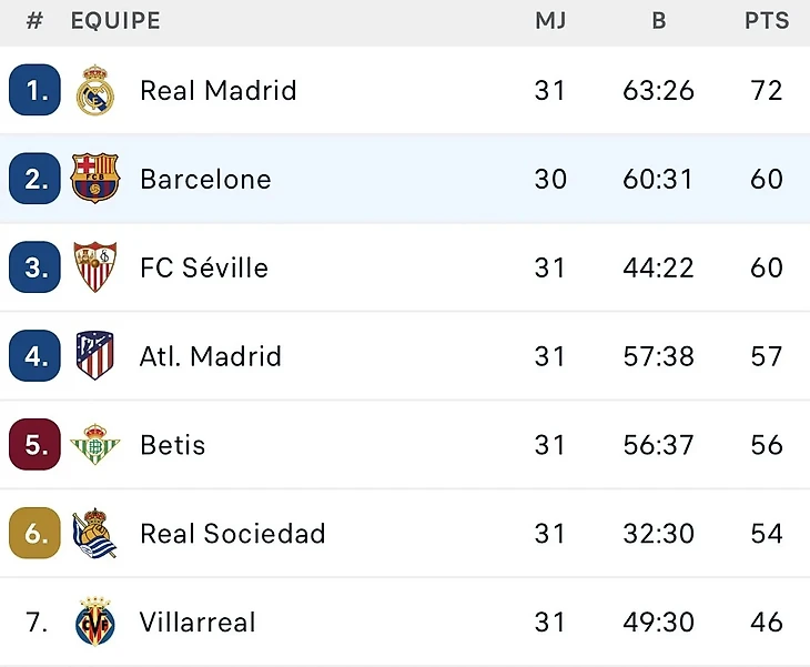 Если очки «Барсы» будут равны с «Мадридом» в конце соревнования, то будут учитываться личные встречи, поэтому «Барселона» имеет преимущество (они выиграли 4: 0 и проиграли всего 2: 1, поэтому разница мячей это лучше).