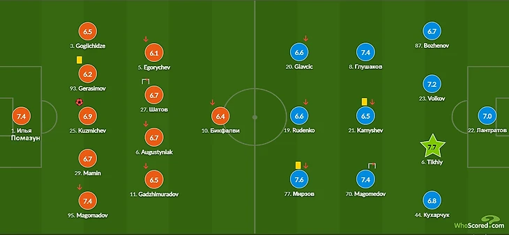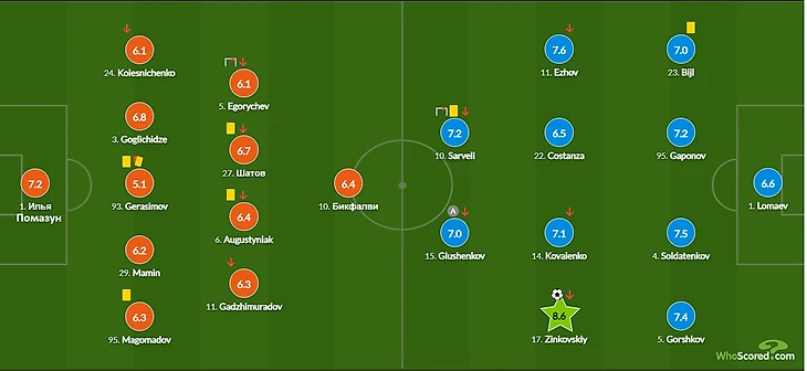 Оценки футболистов за матч «Урал» - «Химки» (0:1). Источник: WhoScored