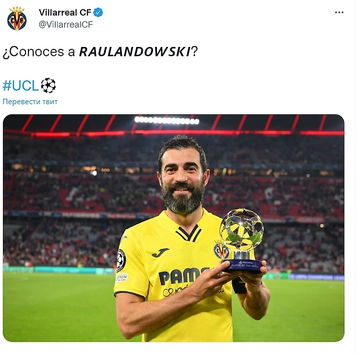 Конечно, твит «Вильярреала» особенно круто смотрится после того, как за одну ночь они сами вышли в полуфинал, а «Реал» выбил из Лиги чемпионов «Челси». У твита 165 тысяч лайков, картинка разошлась абсолютно по всем футбольным аккаунтам.